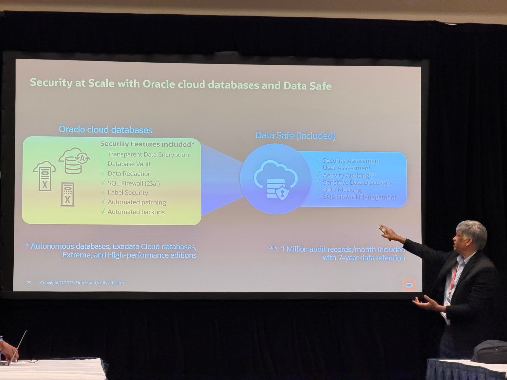 Flexible Infrastructure: Oracle designed its infrastructure building blocks for maximum flexibility. Customers can select exactly the cores and memory they need, with OCI offering 7,000 times more configuration options than competitors without added complexity, because each core and gigabyte of RAM is priced consistently. Storage is equally simple, instead of multiple block storage types, OCI provides a single option whose performance can be tuned dynamically in real time. This philosophy extends to VM availability. Oracle uses Ksplice for zero-downtime kernel upgrades and supports live migration for hardware maintenance without customer reboots, similar to VMware’s vMotion. These capabilities are also coming to Exascale for Exadata 😎.